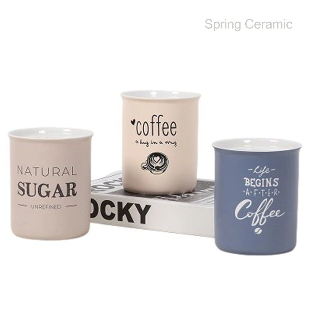 28OZ wholesale ceramic jar coffee design glossy white inside matt color glaze outside with decal printing