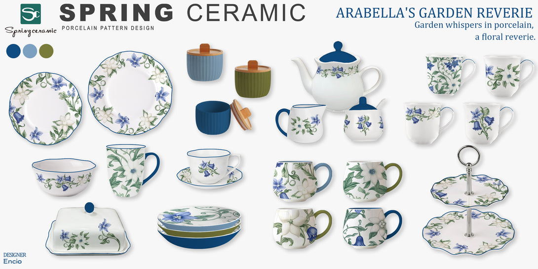 Design Concept: At the hush of dawn, Arabella’s garden spills its secrets—viridian vines twining cobalt blooms, ivory lilies glimmering like moonlit lace. Each piece beckons a pause: a sip of twilight, a bite of summer’s whisper. Let the porcelain’s echo guide you to a realm where petals never wilt, and every meal is a sonnet to nature’s eternal grace.