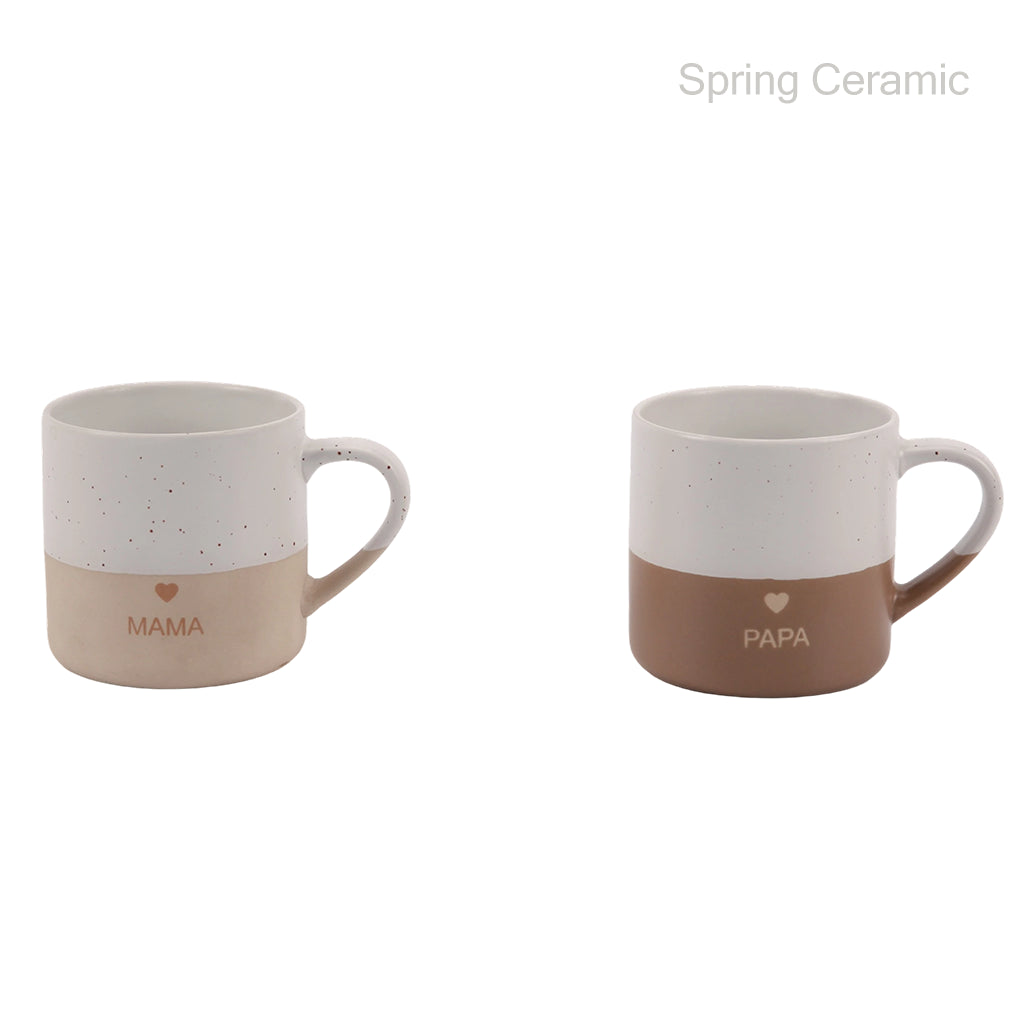 Mama & Papa Speckled Ceramic Mugs - Beige & Brown Matching Set for Family-Centric Home Decor