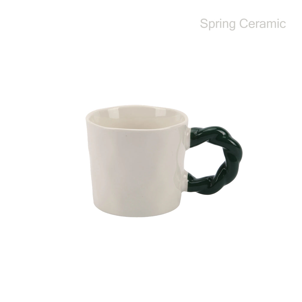 Spring Ceramic Twisted Handle Contrast Color Ceramic Mug